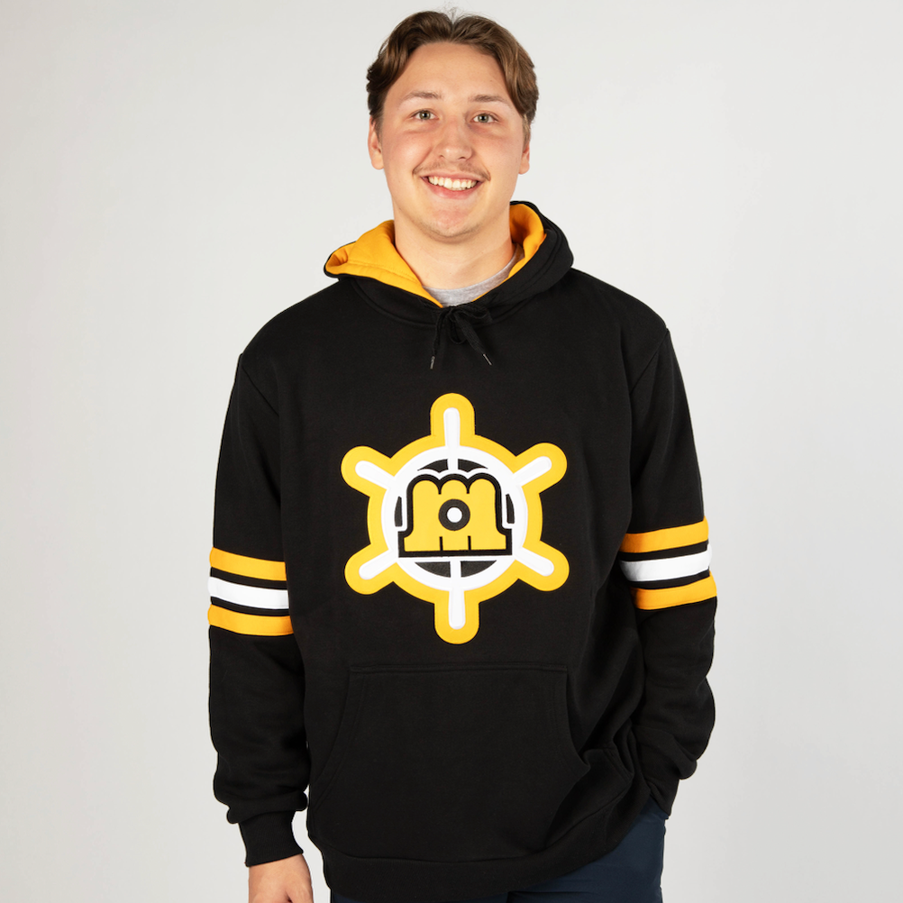 A classic take on the spoke and wheel OG Marines logo with ties to our Boston Bruins affiliation.